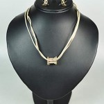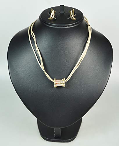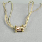 CHARTAGE NECKLACE Belgian Design. Gold Plated Metal with Cubic Zircon Stone (ST56678) Beige Cord/ Gold