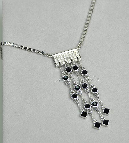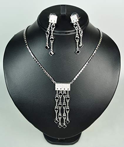 CHARTAGE NECKLACE SET WITH CUBIC ZIRCONIAN STONE . BELGIAN DESIGN. Rhodium Plated Metal with Cubic Zircon Stone (ST57486) Silver /Black jet Stone