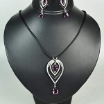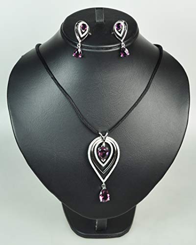 CHARTAGE NECKLACE SET WITH EARRINGS. BELGIAN DESIGN. Rhodium Plated Metal with cubic Zircon Stone (ST59624) BLACK CORD+AMETHYST STONE