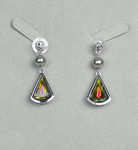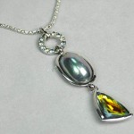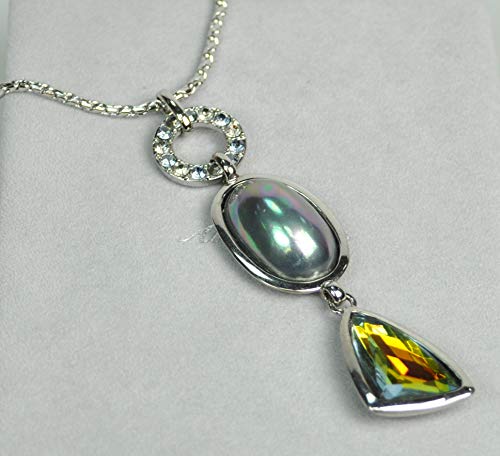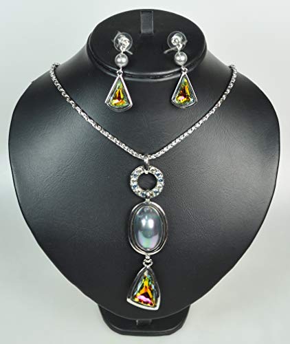 CHARTAGE NECKLACE SET WITH SWAROVSKI STONE. Rhodium Plated Metal Belgian Pearl and Swarovski Stone. (ST66837) Silver/ Gray Pearl
