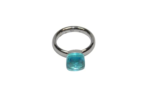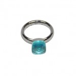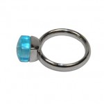 Finger Ring Rhodium Plated with Cubic zircon Stone (F4192) Aquamarine