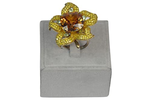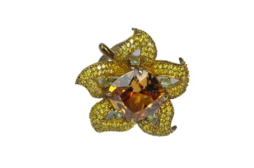 Finger Ring Rhodium Plated with Cubic zircon Stone (F51809) Light Olivine/Light Topaz