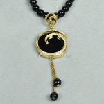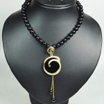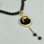 LEBANON MADE NECKLACE . GOLD PLATED METAL WITH BLACK BEADS (N3796) Black / Gold