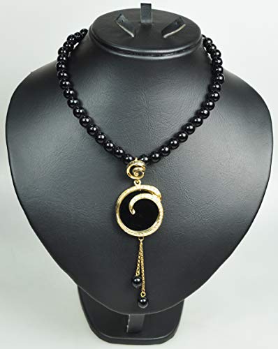 LEBANON MADE NECKLACE . GOLD PLATED METAL WITH BLACK BEADS (N3796) Black / Gold