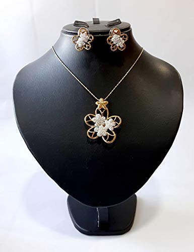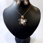Necklace Set Belgian Design, Rhodium Plated Metal with Cubic Zircon (ST70373) Gold