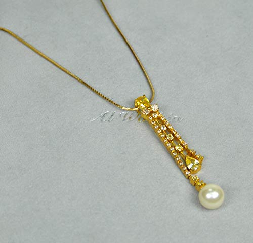 NECKLACE SET RHODIUM PLATED METAL WITH CUBIC ZIRCON STONE AND PEARL.(ST49214) GOLD/LIGHT YELLOW/ LIGHT GREEN