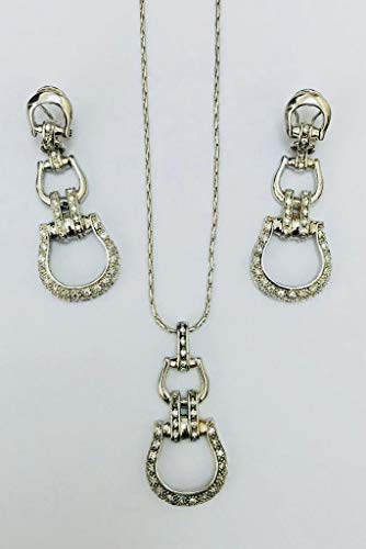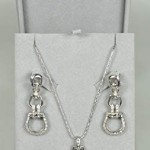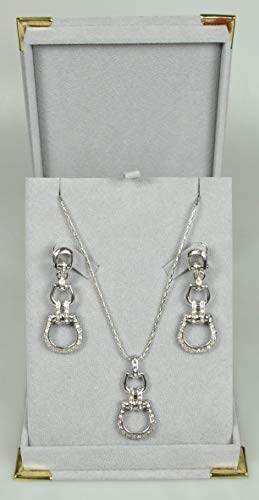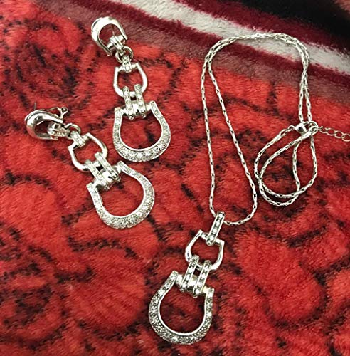 Rhodium-plated with Cubic Zirconia Stone Necklace Set (Horseshoe design Pendant and Earrings)